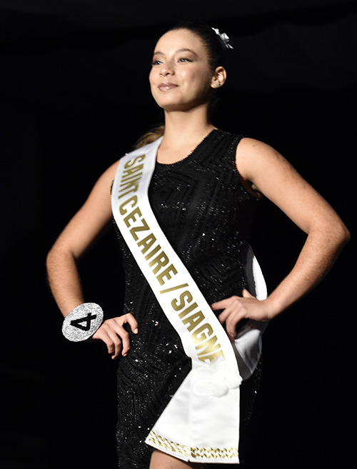 Parmi les 23 prétendantes au titre âgées de 18 à 23 ans, se trouvaient des rousses, des blondes, des brunes aux yeux bleus, verts ou marrons, des bouches pulpeuses, des corps de rêve… Les candidates juchées sur de hauts talons, lumineuses en tenues balnéaires ou glamour en robes somptueuses, se sont senties pousser des ailes de la gloire d’un soir. Parmi elles, la N°1 : Beverly Souèvamanien (20 ans – Montauroux – étudiante en management esthétique à Cannes) ; N°2 : Brithany Souèvamanien (20 ans – Montauroux – étudiante en BTS économie sociale et familiale – École des Fauvettes – Cannes) ; N°3 : Clémence Limouzy (18 ans – Collongues – école de commerce – Aix-en-Provence) ; N°4 : Myriam Gomi (18 ans – Saint Cézaire – 1ère année de Pharmacie – Nice) ; N°5 : Chloé Plateel – Valderoure – étudiante en BTS Tourisme – Nice).