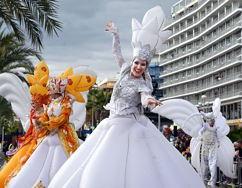 Dans les gradins, une foule hurlante et gesticulante acclama sans retenue le couple royal accompagné de 14 chars allégoriques, burlesques et satiriques, à l’effigie de Luke Skywalker, l’un des personnages de la saga Star Wars pour le Roi. Ou de Marilyn Monroe dans Sept ans de réflexion et la fameuse scène de la bouche d’aération soulevant la robe de l’actrice pour la Reine. Étaient également représentés : Michael Jackson, Freddy Mercury, Barbie & Ken… et même Elon Musk.