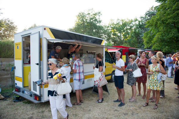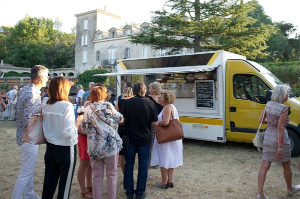 La soirée de Jazz manouche à commencé à 19h par une dégustation de convivialité provençale: les délicieux crus Rouge, Rosé et Blanc du Château Roubine révélaient tous leurs arômes avec de la tapenade et des amuse-bouches provençaux ou de savoureux plats concoctés sur place dans quatre food-trucks.