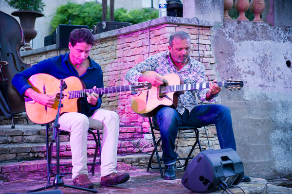 Swing 39, morceau aurait été écrit en 1939 (ou 1940…) Minor Swing, Belleville, la Swing Valse, Nuage, Quand je te prends dans tes bras, Je suis seul ce soir, Nesming… Des interprétations qui ont transporté les mélomanes sur les chemins jazzy de Django, dont les yeux brillaient de plaisir comme les étoiles scintillantes dans le ciel de cette belle nuit d’été. Un exceptionnel moment de partage musical et de convivialité au Château Roubine, dans le parc peuplé de sculptures, dont l’Arche du peintre-sculpteur Breteau.