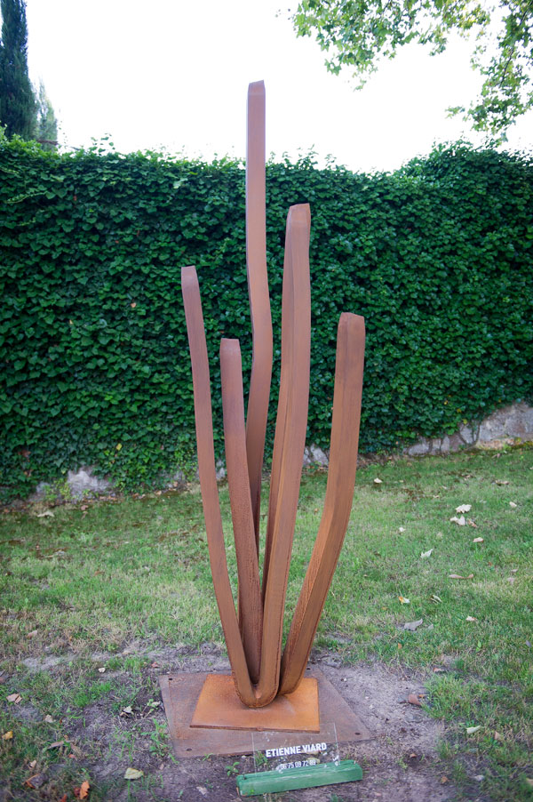 Le sculpteur Étienne Viard vit et travaille dans le Vaucluse. Artiste autodidacte, il a débuté sa carrière en travaillant la céramique. Il découvre l’acier Corten, et se prend de passion pour cet acier auto-patiné à corrosion superficielle forcée, utilisé pour son aspect et sa résistance aux conditions atmosphériques. Dès lors, l’artiste se consacre entièrement à cet art monumental, inspiré par la nature. Lors de ses promenades, il capte d’infimes sensations dans le monde végétal ou minéral, qu’il cherche ensuite à retranscrire dans ses créations artistiques: ondulations aquatiques, mouvements de la pluie, strates géologiques. Défini comme un sculpteur d’acier, Étienne Viard apprivoise avec énergie et rigueur ce matériau puissant et rigide qui se présente en barre ou en feuilles épaisses. Chaque œuvre, qu’elle soit monumentale ou modeste, fait l’objet d’une réflexion sur dessin, découpage ou maquette. Ensuite l’artiste découpe, façonne et plie à froid chaque pièce, jusqu’à lui donner souplesse et poésie.