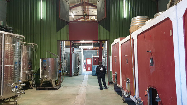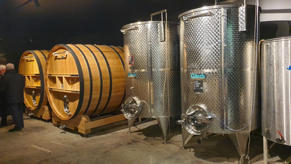 L’extension de la cuverie et la restructuration de la cave de vinification a donné une pièce de stockage de nos vins à ambiance contrôlée, un sas logistique pour les départs et les travaux d’étiquetage et, passé une magnifique entrée de chai en camaïeu de plaque de fer oxydées, réalisée par l’Age de Fer, un chai à barriques abrite une cave de foudres et de demi-muids pour bien élever les vins rouges. « C’est un geste symbolique à travers lequel nous souhaitons exprimer notre investissement, mais pas que pécuniaire, notre investissement à faire honneur à tous ceux qui travaillent ou ont travaillé à rendre notre vin meilleur. » a déclaré Emmanuel Delhom devant un parterre d’invités, de clients, de chefs d’entreprises locales ayant participé aux travaux et d’élus.