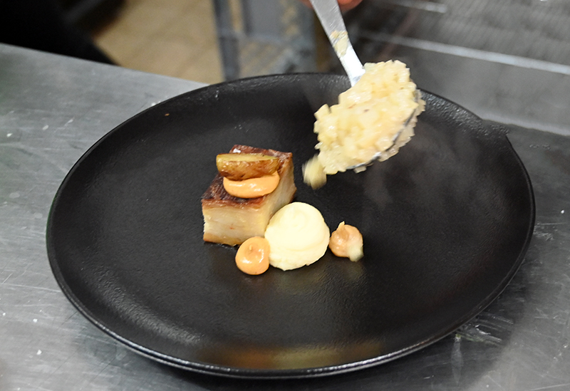 Le samedi 27 janvier 2024, le chef Xavier Malandran et le chef pâtissier Ludovic Gambini ont transposé leurs délicieuses expériences culinaires depuis le village de Mougins et le centre de Nice vers le décor boisé, chaleureux et montagnard du restaurant L’Alisier au pied des pistes d’Auron. L’accueil chaleureux de Mickaël Cenatiempo, propriétaire des lieux, sa bonne humeur et celle de son équipe ont donné un caractère festif au délicieux dîner des chefs. Pour remercier les convives de leurs félicitations méritées, les deux chefs ont esquissé un pas de dance sur la musique du DJ Lio qui a mis le repas en musique. La mascotte de L’Alisier, le chien Jackson, ayant revêtu son smoking pour l’occasion, a apporté sa joie de vivre à toutes les tables!