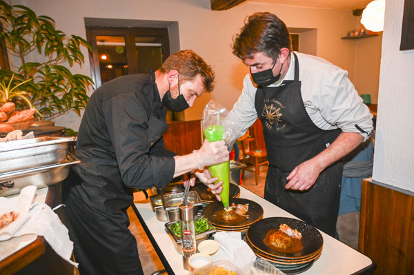 Les 3 Marmottes, restaurant partenaire de l’événement au décor intime, boisé et chaleureux, accueillait le mardi 18 janvier 2022, dans les cuisines de Laurent Lequemenec un dîner gastronomique – qui affichait complet – animé par le virtuose du piano Stéphane Furlan du restaurant Le Sansot à Tourrettes-sur-Loup et le Chef pâtissier Marc Payeur, Pains et Pâtisseries Carbacel à Nice ont transposé leurs délicieuses expériences culinaires dans ce lieu chaleureux sur la place de Saint-Dalmas-le-Salvage face à la majestueuse église du village.