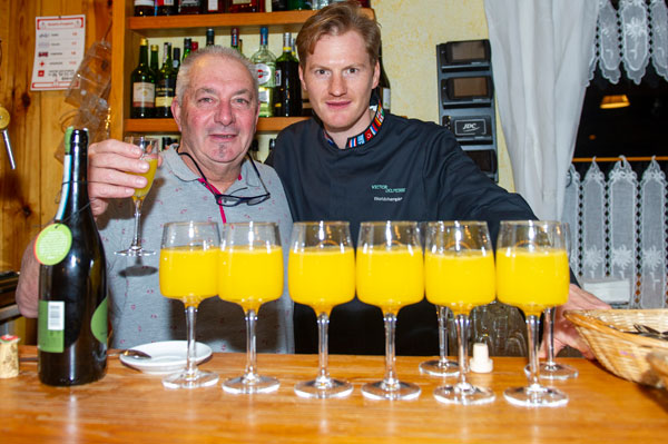 La soirée s’est ouverte en apéritif sur les notes vivifiantes du savoureux Riounet, le cocktail du talentueux et attachant Victor Delpierre, Champion du Monde Barista/Cocktails, qui a imaginé lors des Chefs au Sommet d’Auron 2018 ce breuvage devenu la boisson officielle de la station. Cette harmonieuse boisson des sommets peut se siroter froid après belle ballade estivale en montagne, ou se déguster en version grog ou vin chaud après une journée sur les pentes neigeuses, en après ski pour se réconforter. Complété à 50% avec une bulle, Champagne, Crémant ou Prosecco, le cocktail devient un génial apéritif pour accompagnera les plus beaux moments festifs.