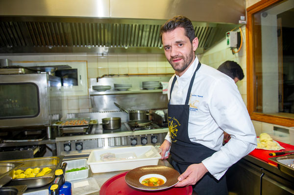 Depuis neuf ans le Festival de la Gastronomie de Montagne réunit des duos de grands chefs et chefs pâtissiers talentueux de la Côte d’Azur qui partagent au pied des pistes un authentique moment de plaisirs culinaires et de convivialité au cœur des somptueuses montagnes du Mercantour. Pendant le Festival, de grands noms du monde culinaire réalisent chaque soir de véritables prouesses gastronomiques en réalisant des dîners à quatre mains sur des « pianos » inconnus. Le Vendredi 24 janvier, Aurélien Véquaud* et Steve Moracchini ont transposé les délicieuses expériences culinaires de La Passagère, le restaurant de l’Hôtel Belles Rives à Antibes, dans le chaleureux décor de chalet boisé et montagnard du restaurant Le Gratusier au pied des pistes.