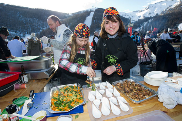 Les Chefs au Sommet d’Auron 2019 ont revêtu la tenue des Toques Brûlées pour offrir aux touristes une démonstration de leurs talents culinaires en les régalant des meilleurs délices et spécialités de montagne.