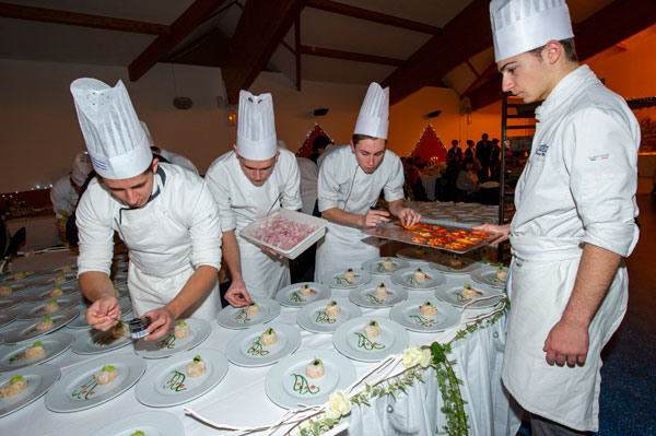 Cette année, Michel Guillot, Président de l’Office de Tourisme des Stations de la Tinée et organisateur des Chefs au Sommet d’Auron, a réuni cinq jeunes Maîtres Restaurateurs des Alpes Maritimes, représentés par Théo Mansi, leur Président. Après avoir régalé les papilles du public lors de l’inauguration des Chefs au Sommet d’Auron sur la place centrale, les Maîtres Restaurateurs ont orchestré à la Salle Rovery un somptueux diner de gala pour 100 convives. Les recettes élaborées par les Maîtres Restaurateurs ont été réalisées et servies avec brio par les élèves du Lycée Paul Augier, dans le cadre d’un projet pédagogique.