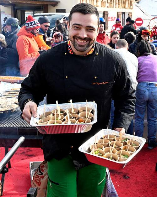 Les Chefs au Sommet d’Auron 2025 ont revêtu la flamboyante tenue des Toques Brûlées pour offrir aux skieurs un show-cooking bourré de talents culinaires en les régalant de délices et spécialités de montagne cuisinées au barbecue.