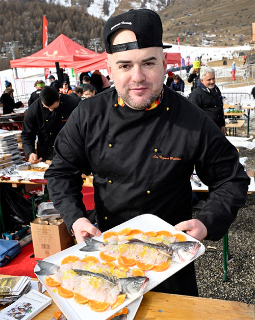 Sous une température hivernale, le locavore des Toques Brûlées, amoureusement cuisiné par la joyeuse et spectaculaire brigade a ravi les visiteurs et leurs familles. La journée des skieurs a commencé avec le plein de savoureuses calories offertes aux skieurs lors du petit-déjeuner sur le front de neige. Ensuite place au Barbecue géant ou chaque cheffe ou chef proposait sa recette raffinée, élaborée au pied du front de neige et des pistes, sous l’œil bienveillant de Michel Guillot, Président de l’Office du Tourisme d’Auron, organisateur du Festival.