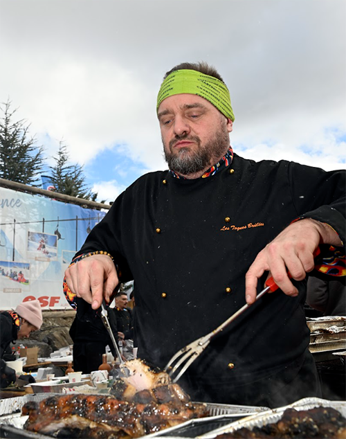 Chefs au Sommet d’Auron 2025 : le Dimanche 19 janvier 2025, le Festival de Gastronomie de Montagne a gâté skieurs et gastronomes : petit déjeuner offert au pied des pistes suivi du désormais traditionnel barbecue géant avec dégustation de grillades concoctées sur les braises de l’amitié par les Toques Brûlées, l’association de chefs animée par le décoiffant couple Noëlle et David Faure. Une vingtaine de cheffes et chefs survoltés ont enflammé le front de neige avec leur délices gastronomiques a grill pour le plus grand plaisir des skieurs du domaine.
