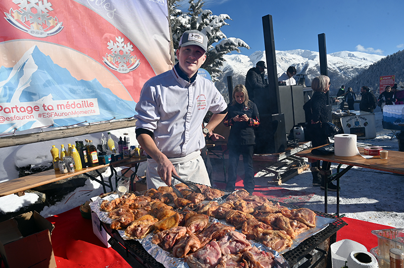 Chefs au Sommet d’Auron 2026 : le Dimanche 26 janvier 2026, le Festival de Gastronomie de Montagne a gâté skieurs et gastronomes : petit déjeuner offert au pied des pistes suivi du désormais traditionnel barbecue géant avec dégustation de grillades concoctées sur les braises de l’amitié par les Toques Brûlées, l’association de chefs animée par le décoiffant couple Noëlle et David Faure (SensÔriel by Noëlle & David Faure). Une vingtaine de cheffes et chefs survoltés ont enflammé le front de neige avec leur délices gastronomiques a grill pour le plus grand plaisir des skieurs du domaine. Le dimanche matin dès l’aube, les skieurs ont également pu profiter d’un petit–déjeuner accompagné de démonstrations de baristas, douceurs artisanales, pâtisseries et boissons chaudes.