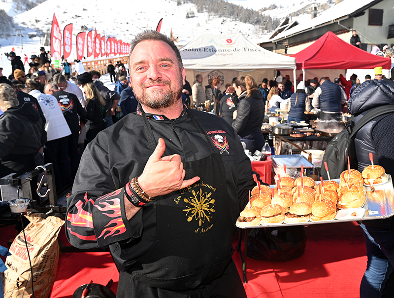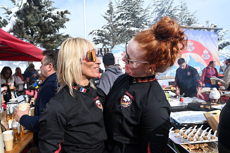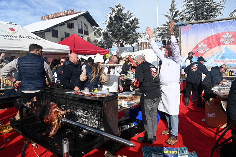 Sous la flambante tenue des Toques Brûlées en présence de Gilles Brunner, parrain de l’édition 2026, une quarantaine de chefs complètement déjantés, emmenés par le chef David Faure de SensÔriel à Nice et Noëlle, sa complice à la ville comme aux fourneaux, ont offert plus de trois heures de bonheur gourmand aux skieurs et patineurs, habitants d’Auron et touristes, en animant avec leur barbecue géant un show d’Art Culinaire d’une rare intensité.