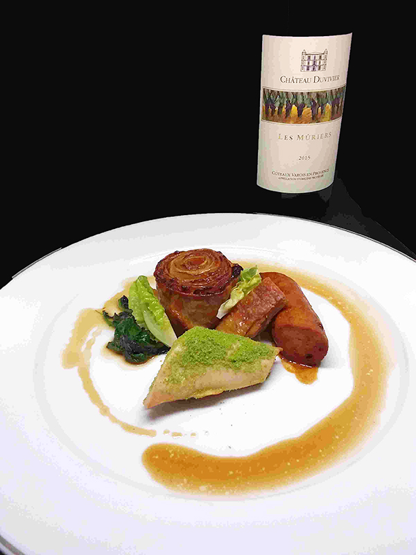 Menu Réunion des chefs réalisé par Nicolas Pierrantoni, chef de L’Hôtellerie de L’Abbaye de la Celle.