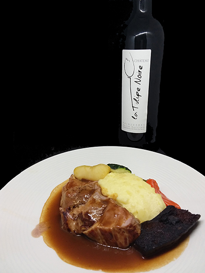 Filet Mignon de cochon, pomme purée, pomme fruit et son boudin grillé (plat du jour)