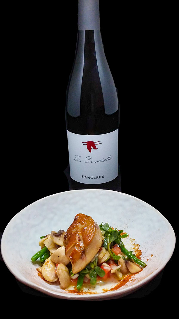 Foie Gras Poêlé, Salade de Haricots Verts, Champignons de Paris, Pourpier, Vinaigrette au Gingembre
