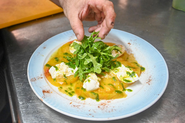 Carpaccio de Tomate Ananas du Pays, Burrata Crémeuse, Pousse de Salade, Sauce Gingembre