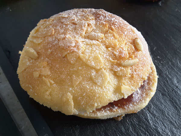 Quatrième Arrêt: chez le Pâtissier et Traiteur Ernest. Michel Ernest a créé la Tarte Cannoise tout spécialement pour l’événement La Cuisine Cannoise en Fête. Une brioche au miel et aux pignons, fourré de confiture de figue et de crème de citron.