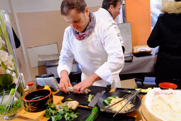 Le 5 mars dès 15h, les producteurs, et les chefs de restaurants participants, concoctaient derrière leurs étals leurs premiers plats estampillés « Cannois » pour les nombreux gourmands venu goûter gratuitement tout les produits du terroir azuréen, qu’ils soient de la terre ou de la mer. Ainsi les cocktails multicolores et détonants à base de pommes, céleris, carottes, fenouils, menthe, herbe de blé de la société Ecogerme eurent un succès fou, le Risotto à la Côte composé de Mascarpone et de Noix de Saint-Jacques préparé par Benoît Romain (L’Auberge Provençale à Cannes) était une pure bénédiction.