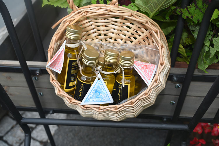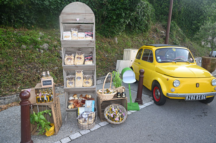 Pour cette soirée d’exception conçue et réalisée COM AND CO DECO, tous les ingrédients d’un marché italien vivant et coloré avait été mis dans la botte puis secoués pour donner une farandole de produits et de mets qui s’accordaient à merveille avec le décor éphémère chic et glamour de la soirée. Le long de la petite ruelle menant au Da Laura, des stands de pâtes, d’huile d’olive et vinaigre balsamique siglés Da Laura fut un véritable enchantement pour les pupilles et les papilles.