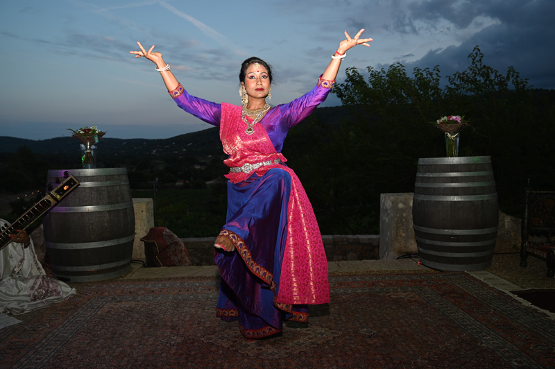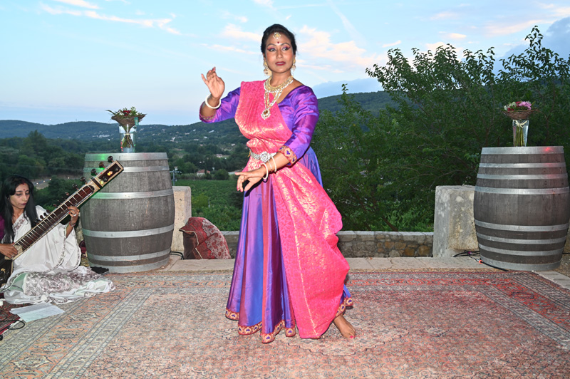 Domaine du Dragon: Mir Nezam, propriétaire féru de culture du Domaine du Dragon, a réuni le 7 août 2021 une foule de mélomanes et d’amoureux d’art de vivre pour une soirée Danse Kathak, avec en prélude, une dégustation des nectars du prestigieux Domaine provençal autour de spécialités indiennes. Ce ravissant spectacle était une étape des Musicales dans les Vignes, un festival organisé par Marie-Jeanne Chauvin, qui conjugue chaque été amour de la bonne musique et charmes épicuriens des grands crus des prestigieux domaines viticoles en Provence.