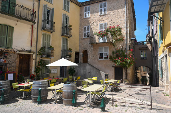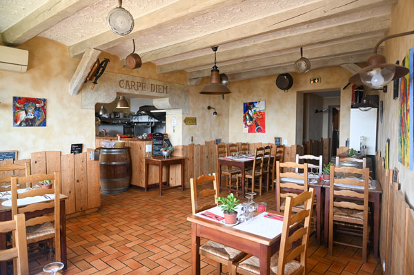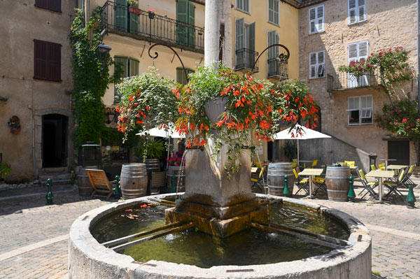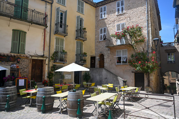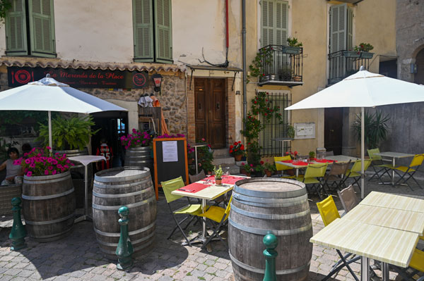 La Merenda de la Place se découvre au détour de petites ruelles médiévales, parsemées d’arcades, de petites places fleuries au charme discret, de fontaines anciennes et d’échoppes d’artisans d’art. Une fois le seuil franchi, le bar en bois rustique, façon halte montagnarde ou troisième mi-temps vous plonge dans une ambiance chaleureuse et conviviale ou les amis du couple sont toujours les bienvenus. Les deux salles de restauration aux belles tables nappées ouverte sur la cuisine s’agrémentent d’un décoration provençale et de poutres en bois au plafond. Les grandes baies vitrées ouvrent sur une vue plongeante du village, du cours du Var et des contreforts de la région niçoise. A la belle saison, la spacieuse terrasse peuplée de belles tables en fer forgé et de tonneaux en bois cerclés, apportent calme et sérénité pour tous ceux qui veulent profiter du soleil tout en se régalant d’une cuisine fraîche au murmure de la fontaine.
