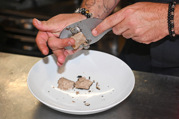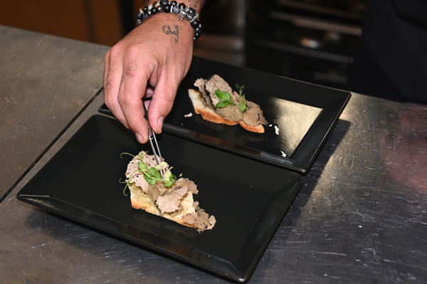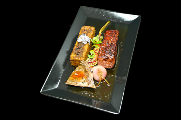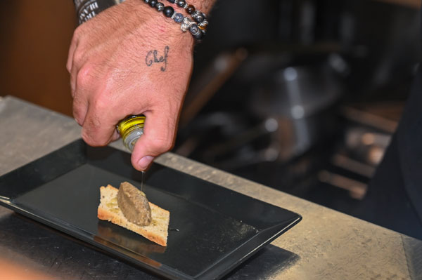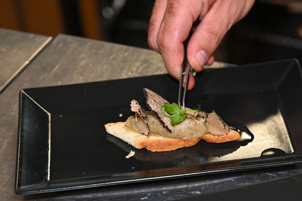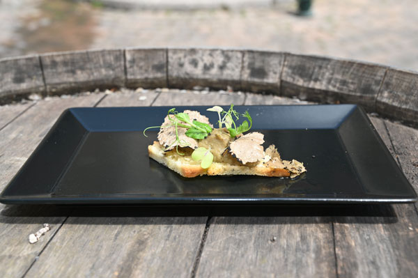 Foccacia toastée, Caviar d’Aubergine à la Truffe d’été: un mariage de goût et de terre, entre croquant et velouté. Belle longueur en bouche avec la truffe dynamisée par le caviar d’aubergine.