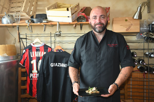 Ancré depuis sept générations dans un terroir qui ne demande qu’à livrer ses richesses à ceux qui le respectent, David Graziani est tombé dans la marmite de la gastronomie grâce à sa grand mère d’origine italienne. Depuis sa plus tendre enfance, la Nonna lui a transmis la passion d’une cuisine empreinte d’authenticité, goûteuse, chantante et conviviale, à l’image de nos amis transalpins. C’est elle aussi qui lui a appris à cuisiner avec les produits du marché et même à réutiliser les restes du frigo pour en faire des plats savoureux et originaux! Pour parfaire ses connaissances culinaires, ce chef autodidacte s’est appuyé sur les précieux conseils de ses deux mentors, Christian Plumail et David Faure. Deux grandes références dans le monde culinaire actuel.