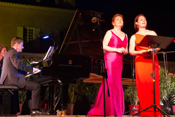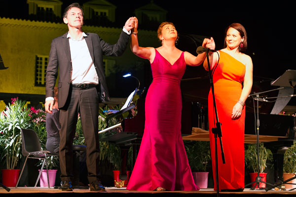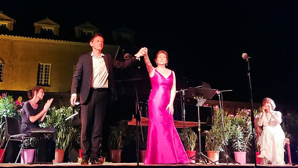 Dans le parc de Château Roubine bordé de vignes, sous la voûte étoilée du ciel d’été, la magie de la musique a charmé les nombreux mélomanes, amateurs d’art lyrique et d’art de vivre. Cette ballade oxygénante, entre terre et mer, débuta avec la voix chaude de la formidable conteuse Eve Ruggieri qui remercia en tout premier lieu François Chaplin pour la prouesse technique dont il fit preuve dans l’organisation des dix ans de Voix en Vigne. Par ses explications sur les œuvres, Eve Ruggieri a donné de la chair aux compositeurs et apporté un supplément d’âme à ce magnifique événement, rythmé par les plus belles pages de Mozart, Schubert, Rossini, Camille Saint-Saëns, Gershwin, illustrant à merveille cette nature qui alimenta l’inspiration des plus grands musiciens.