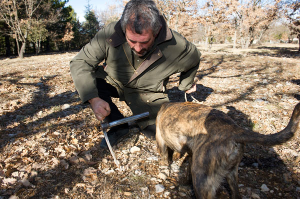 La formule Week-end Truffe à 120 euros comprend la chambre, le petit-déjeuner, une démonstration de recherche de truffes avec un chien truffier, un menu découverte comprenant six plats, vin, digestif et café.