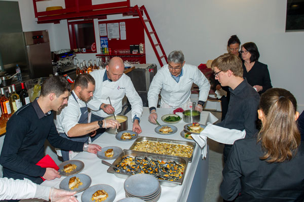Accueillis par Markus Conrad, les invités ont dégusté en apéritif les fraîches et minérales cuvées Rosé et Blanc, portant les noms de deux des enfants de Markus et son épouse Annrosé: Carlotta et Roberta. La cuvée Carlotta est un Blanc dont les raisins sont récolté à la main la nuit, et mis directement dans le pressoir – comme en Champagne ou en Alsace – pour préserver le fruit. La cuvée Roberta est un Rosé très frais, offrant une belle minéralité et fraîcheur, avec en bouche explosion de fruits: agrumes pamplemousse, groseille. Un excellent avant-goût de ce millésime 2019, aux grappes de raisins parfaits, amenés en cuverie très sains de par la sécheresse qui a préservé la vigne des maladies.