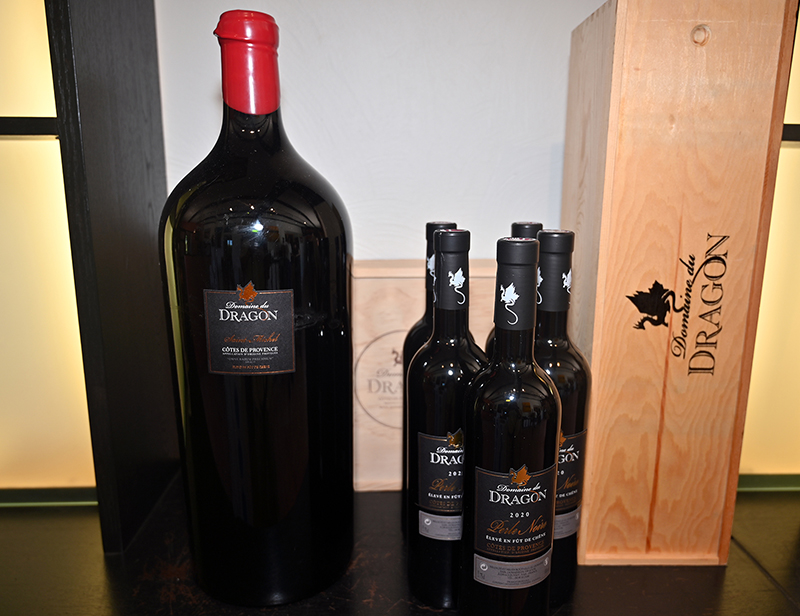 Nommé d’après une légende évoquant la présence d’un dragon – symbole de Draguignan – tapi dans des grottes proches de la Nartuby, la rivière qui baigne le domaine, le Domaine du Dragon s’étend au pied des somptueuses Gorges de Châteaudouble au nord de Draguignan. Le vignoble ondule sur 26 hectares de coteaux argilo-calcaires bien drainés, et ses pampres produisent des vins d’exception aux médailles prestigieuses. Depuis l’acquisition du domaine en 2015, Mir Nezam, le propriétaire, a restructuré le vignoble et ses cépages, modernisé la cuverie et les processus de vinification. Les résultats ont été à la mesure des investissement et des efforts passionnés déployés par Mir Nezam et son équipe : les médailles d’or récompensent les différentes cuvées et crus racés et raffinés du domaine !