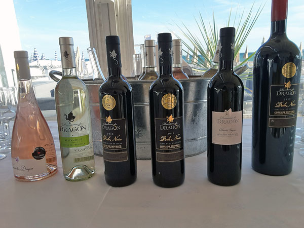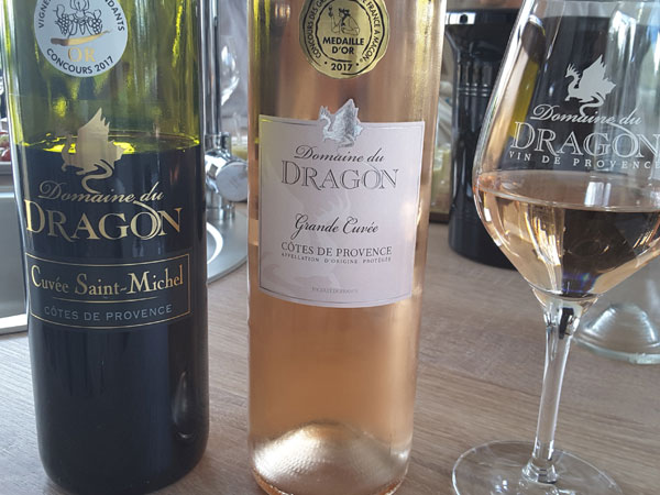 Parmi les 10 vins du Domaine du Dragon, on trouve dans les Rosés AOP une Grande Cuvée, un rosé pour l’apéritif, une Cuvée Prestige et la Cuvée Trésor du Dragon, des vins plus gastronomiques. Les cuvées Rouges se répartissent en un IGP du Var, Le Merlot 2013, et les cuvées AOP Saint-Michel, l’emblématique Perle Noire, Hautes-Vignes et La Clappe. Les Blancs sont en cuvée AOP Les Restanques et la Cuvée du Castrum.
