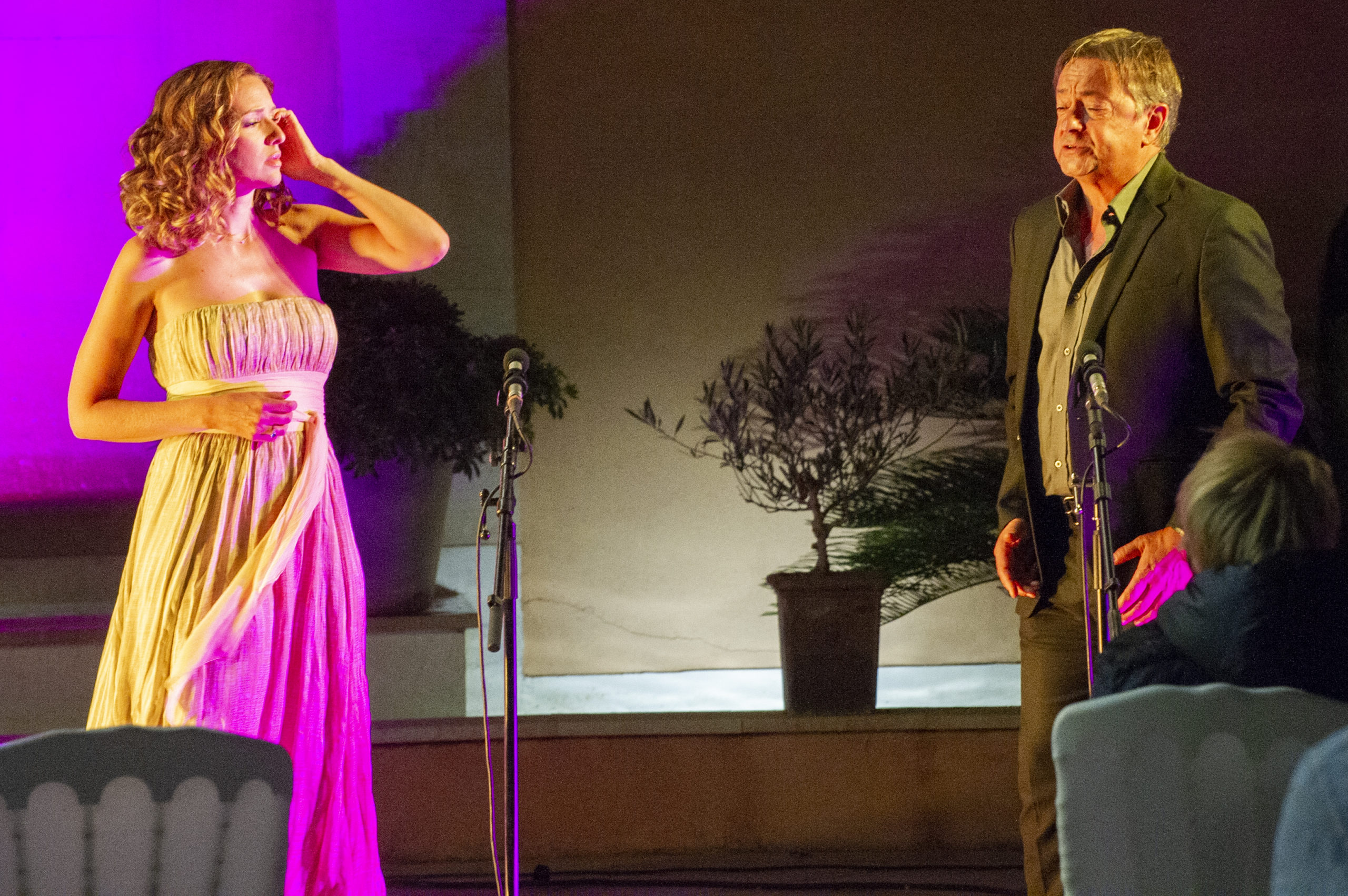 Roméo et Juliette, La Traviata, Manon, Faust… autant d’amours contrariées, de tragédies amoureuses, de relations mélodramatiques, où l’amour fou le dispute à une vie de luxe et de plaisirs. Les interprétations tour à tour émouvantes, dramatiques ou exaltées des héros et héroïnes par Chloé Chaume et Luca Lombardo ont ébloui l’auditoire de mélomanes réunis sur le patio du Château, qui, savamment illuminé pour mettre en valeur le majestueux platane qui étendait ses. ranches sur l’auditoire, évoquait un théâtre grec, temple d’émouvantes tragédies.