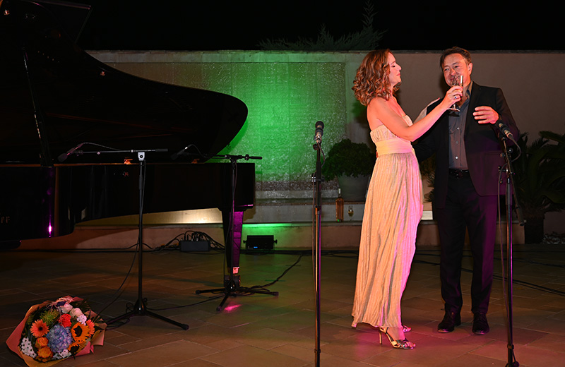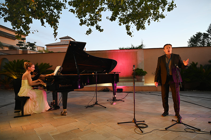 La magie de la musique de Stéphanie Humeau et les voix chargées d’émotions du duo Chloé Chaume et Luca Lombardo ont ensuite charmé les nombreux mélomanes, amateurs d’art lyrique et d’art de vivre. La musicologue Marie-Automne Peyrègne a présenté avec humour et finesse les quatre parties du concert, entrecoupées de récitals de piano de Stéphanie Humeau.