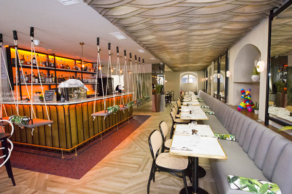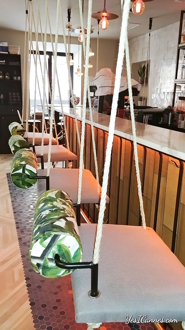 Une nouvelle adresse niçoise qui séduira à coup sûr les esthètes en quête de nouveautés gastronomiques avec son cadre exotique, son parquet marqueté, ses luminaires Art Déco, où les tapisseries végétales et les balançoires suspendues invitent à l’évasion.