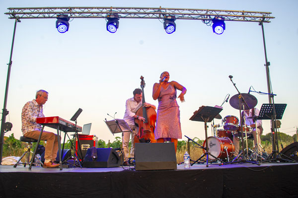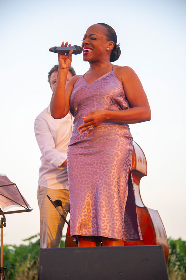Domaine des Féraud: alors que les raisins mûrissent sous l’ardent soleil du Midi, le cadre de rêve du Domaine des Féraud, sous les frondaisons des majestueux pins parasol touchant le ciel d’une nuit d’été en Provence, la voix envoûtante d’Erica Papillion-Posey a entraîné le public de mélomanes dans son univers Jazz, Blues, Swing de grands classiques américains, émaillé de pépites de chansons en français. Ce concert était une étape des Musicales dans les Vignes, dixième édition, un festival organisé par Marie-Jeanne Chauvin, qui conjugue chaque été amour de la bonne musique et charmes épicuriens des grands crus des prestigieux domaines viticoles en Provence.