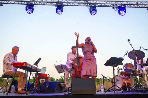 A Vidauban, le Domaine des Féraud étend les pampres de son vignoble au début de la plaine des Maures. Markus Conrad, propriétaire du prestigieux domaine viticole, lui-même musicien, accueille depuis longtemps l’Art au milieu des vignes avec des événements culturels comme concerts ou expositions d’artistes. Le 15 juillet 2022, les Féraud accueillaient une star du Jazz, la grande chanteuse américaine Erica Papillion-Posey, accompagnée par un trio époustouflant de talent, les excellents musiciens de Spirale Trio. Après la dégustation des mets et des vins, l’auditoire s’est calé dans les confortables transats roses des Musicales dans les Vignes pour un voyage mélodieux dans le Jazz américain. La grande star de la chanson jazzy a enchanté les amoureux de Jazz, d’art de vivre en Provence et de bons vins avec ses interprétations touchantes de grands standards.