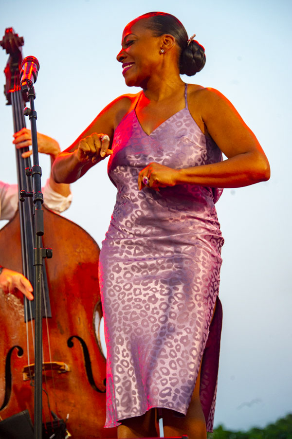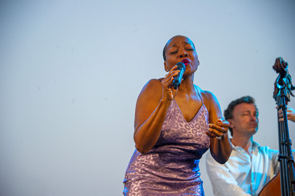 Dès les premiers accords du grand classique Summertime de George Gershwin, Erica Papillion-Posey a tissé des liens de complicité avec un public conquis par sa voix singulièrement envoûtante. La chanteuse a livré ensuite un large répertoire de reprises et de standards revisités avec beaucoup d’émotion et d’intensité, laissant la puissance de ses interprétations imprimer les émotions au fond de nos âmes et de nos cœurs. Sa joie de vivre et son énergie communicative ont éclairé son répertoire de titres touchants d’un chaud soleil mélodique, sa voix, formée au lyrique classique, aux inflexions se baladant dans les harmonies vocales, haut perchées ou groovy dans des improvisations vocales. La forte présence scénique d’Erica Papillion-Posey et son énergie débordante ont transporté d’allégresse le public, charmé de voir la chanteuse descendre parmi pour inviter les mélomanes à reprendre un refrain avec elle.