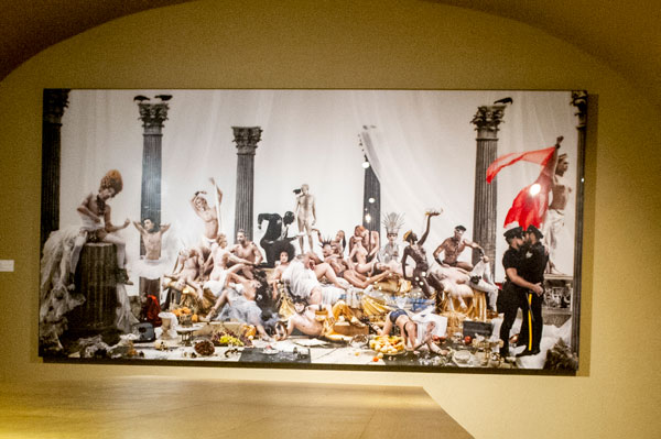 Gérard Rancinan aime mettre en scène des « Cènes », dont une saisissante avec des sosies, et détourner des images classiques comme le Radeau de la Méduse de Géricault ou le mythique cliché Raising the Flag on Iwo Jima de Joe Rosenthal.