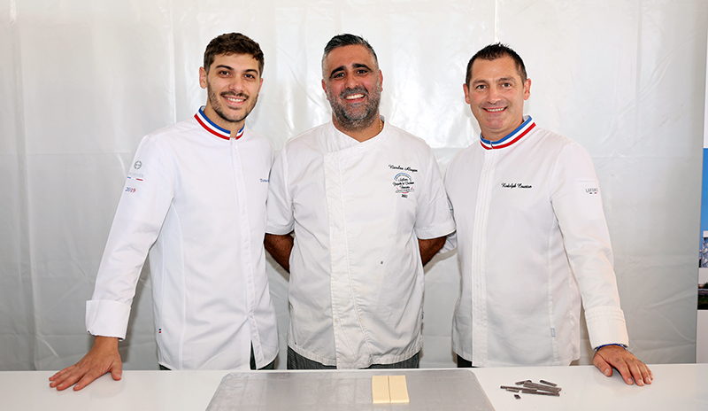 Depuis quelques années, le Concours du Jeune Chef Pâtissier met à l’honneur la pâtisserie de restaurant. Le dimanche 15 septembre, le moment fort du Festival International de la Gastronomie était placé sous la présidence de Guy Krenzer. Le jury composé de Steve Moracchni, Julien Dugourd, Mercotte, Charles Azar, Kévin Rabateaud, Charles Bernardet et Vincent Riou ont eu la délicate tâche de départager les candidats. Au menu de l’épreuve qui s’est déroulée en trois heures : un dessert autour du thème La Provence. Au final, c’est Clotilde Ghibaudo (Carlton Cannes) qui l’emporte devant Ludovic Perez (La Bastide des Anges – Bruno Oger – Le Cannet) suivi de près par Tom Pélissier (La Vague de Saint-Paul – Saint-Paul-de-Vence). Nicolas Preud’homme (Hôtel nhow – Marseille) prend la quatrième place. 1er prix commis : Océane Rouvière (Faculté des métiers, École hôtelière de Cannes).