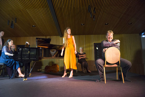 Mozart a ouvert en beauté et en gaieté cette Nuit à l’Opéra avec un extrait de Cosi fan tutte, un duo de séduction de deux soeurs volages, interprété par Tatiana Probst (soprano), Violette Polchi (mezzo soprano), accompagnées au piano par Philip Richardson. Olivier Grand (baryton), avec la complicité d’Eric Courrèges au violoncelle, ont ensuite livré une poignante interprétation du très bel air De l’art splendeur immortelle, dans lequel Benvenuto Cellini, condamné à mort, médite sur sa fin prochaine. La joie de vivre est revenue avec la « folie organisé et complète » de l’Italienne à Alger, premier opéra-bouffe du très jeune Rossini (21 ans), où le pacha Mustapha se fait berner par la jeune et jolie italienne Isabella qui veut délivrer son Lindoro retenu prisonnier.