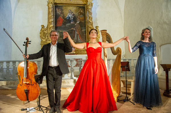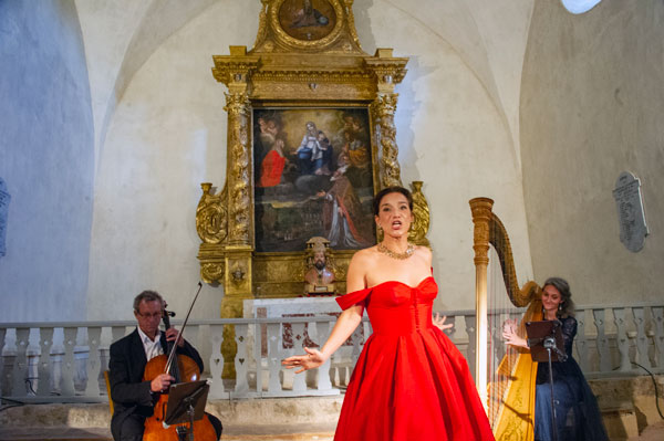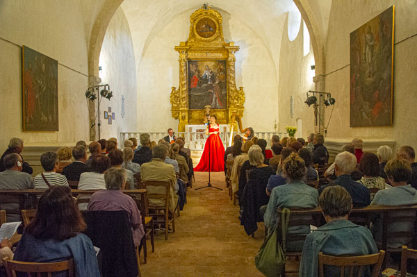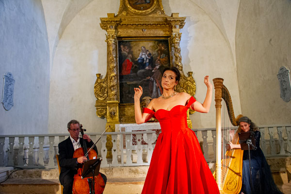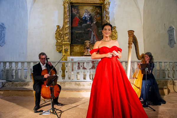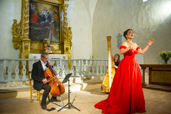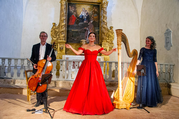 Dans le cadre du Festival de Musique Ancienne de Callas, Françoise Barre, présidente du Festival, a invité Eric Courrèges, organisateur du Festival de Musique des Chapelles, à donner un concert dans la chapelle qui fut le berceau du Festival avant l’interdiction de pénétrer dans les massifs forestiers en été. Ce fut donc avec émotion que la présidente et les mélomanes ont retrouvé cette merveilleuse chapelle à l’acoustique extraordinaire, idéale pour magnifier la musique et la voix. La soprano Fabienne Conrad accompagnée de Cécile Maudire à la harpe et d’Eric Courrèges au violoncelle ont brillamment interprété des prières et méditations funèbres ou d’allégresse et des airs d’héroïnes d’opéra « baignant dans la lumière de la lune et celle du soleil ».
