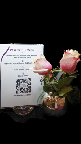 Les lianes noueuses de la vigne et la glycine qui courent le long des murs côtoient le figuier nourricier aux bras étendus vers le ciel. Dans cet oasis de sérénité, le toit du patio ouvrant sur l’azur du ciel permet de profiter en même temps des caresses du soleil et des senteurs iodés de la Méditerranée aux beaux jours. Les grandes assiettes en porcelaine délicatement posées sur les tables joliment nappées, les verres d’une transparence cristalline, le lustre en pâte de verre signé années 30 et les lumières finement tamisées, apportent de jolies notes de romantisme chic et élégant, dans une havre de calme idyllique.