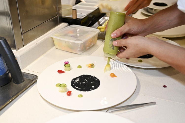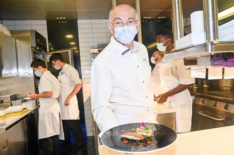 Ce chef d’exception élabore une cuisine extrêmement technique, rigoureuse, légère, fraîche et instantanée. Adepte des cuissons courtes, il met le noble produit à l’honneur, tablant essentiellement sur la nature essentielle d’un goût, d’un parfum.