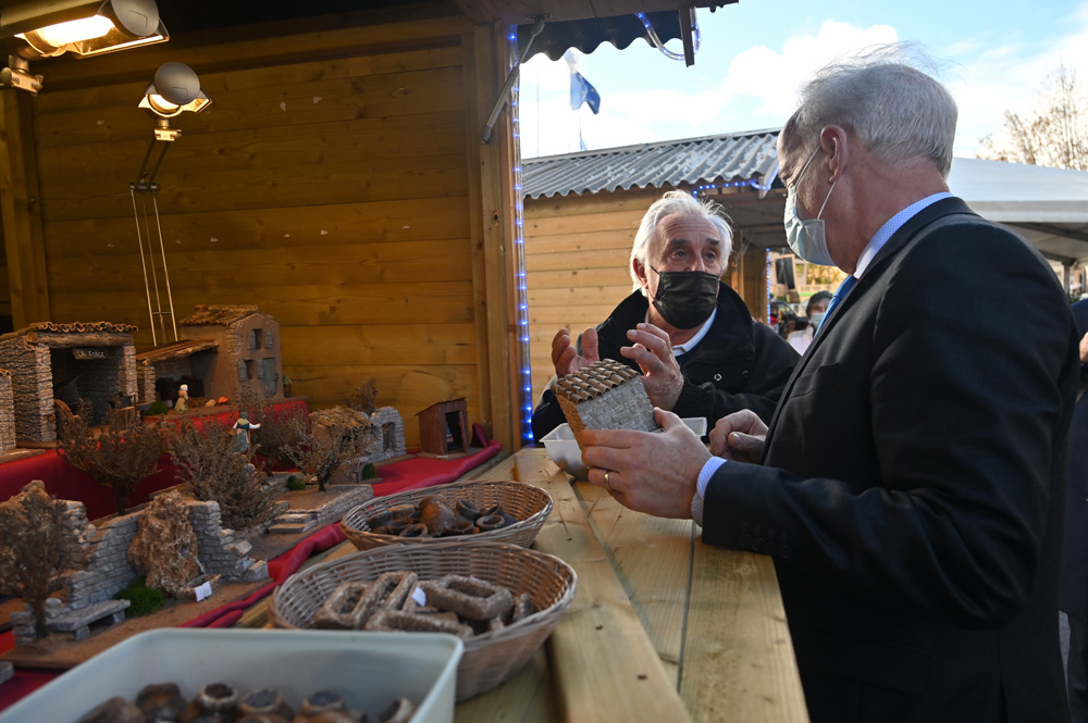 De son côté, Nicolas Canet, le représentant de l’Union des Santonniers et Crèchistes, installé au Cannet, ira même jusqu’à lui offrir un cadeau en remerciement de son soutien aux acteurs économiques de Grasse: « L’an dernier, quand on était dans la difficulté avec l’annulation des foires, il avait débloqué la situation et nous avait sauvé la mise. On voulait le remercier pour son action ». Le ministre fut également à l’écoute des artisans, dont l’entreprise de certains d’entre eux ont été récompensée par la distinction d’Entreprise du Patrimoine Vivant pendant la crise sanitaire.