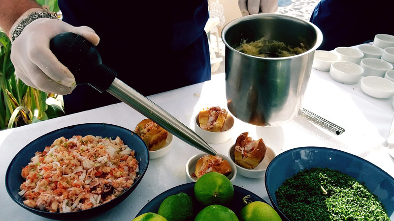 Amarillo : homard, écrevisses, mayonnaise amarillo, citron vert, cébette, piment d’Espelette.