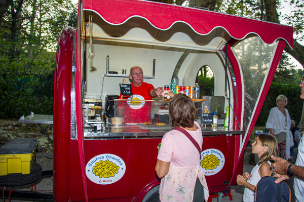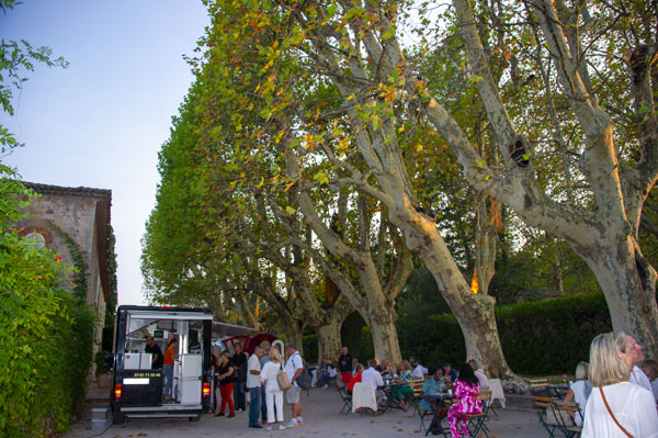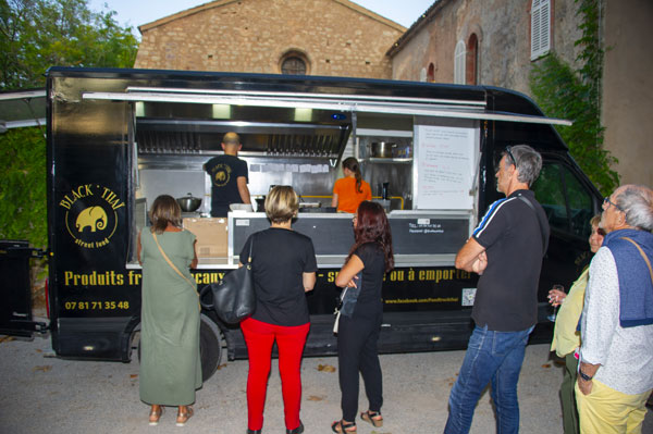 Avant la ferveur du Gospel, la soirée a commencé dès 19h par des accords mets et vins lors d’une dégustation dans la convivialité provençale. Les soirées concert/dégustation des Musicales dans les Vignes de Provence marient les plaisirs d’Épicure, chantre de l’art de vivre, aux bonheurs d’Euterpe, muse de la musique. Ainsi, les précieux nectars du domaine, comme la Cuvée Lampe de Méduse Rosé, la Cuvée Prestige Blanc et la Cuvée Prieuré Rouge ont révélé tous leurs arômes autour des savoureux plats concoctés « minute » des food-trucks Le Mézé des Demoiselles de La Motte et Black Thaï de Draguignan. Côtés gourmandises, les savoureuses Gaufres chaudes d’Alain ont rassasié les envies de douceur, alors que d’autres se sont rafraîchis auprès de l’ice-truck MaBoul (La glace qui roule) avec ses glaces et sorbets artisanaux.
