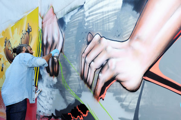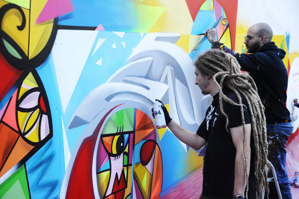 A travers les rues du village, les graffeurs se sont attelé pendant trois jours à la réalisation en live d’immenses fresques colorées. Pots de peinture aux pieds et pinceaux à la main, ils ont performé devant des passants, époustouflés de voir avec quelle dextérité ces artistes de rue réalisaient leurs œuvres.