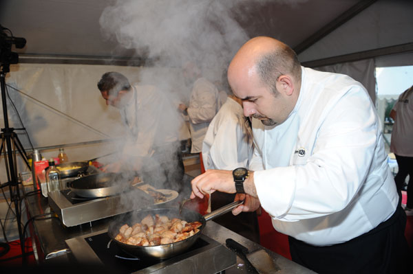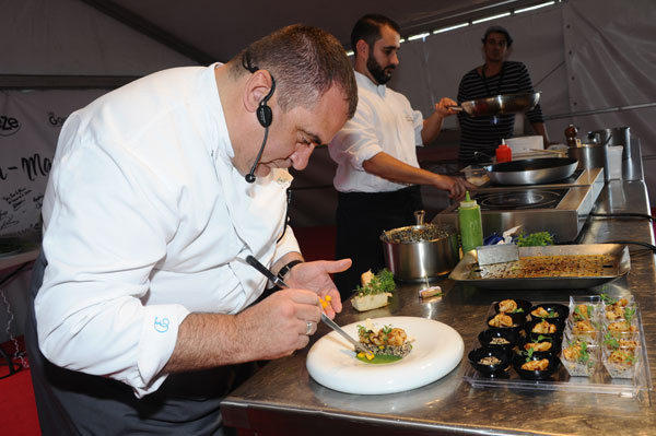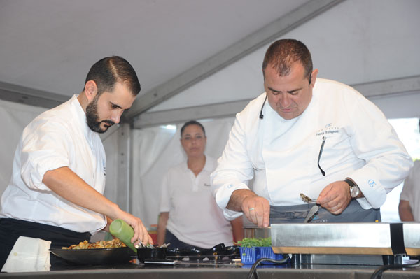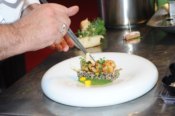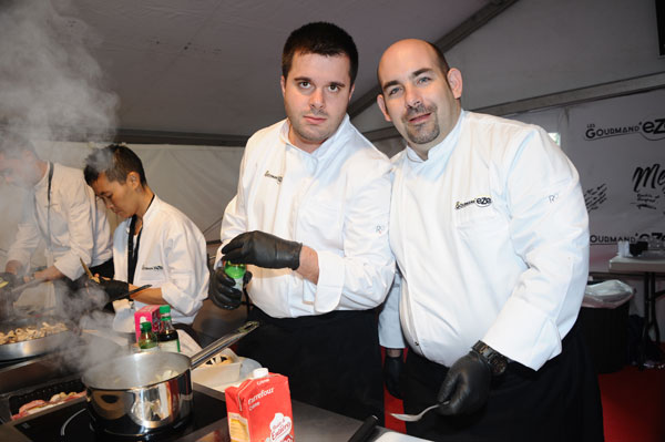 Place ensuite aux plaisirs des yeux et du palais avec les shows gastronomiques réalisés en live par les prestigieux chefs. Les sens et les papilles en éveil, le public avait les yeux rivés sur les « pianos » installés sous de grandes bâches blanches disséminés à travers le village. Les apprentis cuistots massés sur les bancs étaient attentifs aux conseils et tours de main donnés par les chefs lors de la réalisation des recettes. Le chef étoilé Patrick Raingeard régala les yeux et les papilles des gourmets en réalisant un Quinoa Bio Mascarpone et Basilic, Crevettes Sautées Thaï. En plus d’être délicieux, ce plat facile à réaliser a ravi l’assistance par sa rapidité d’exécution.